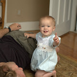 The next ones are in the morning with daddy playing with Maggie in the living room. In one shot I swear she is telling us all it is her first b-day with one finger in the air :)